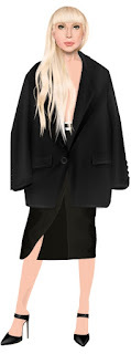 Esse é criativo porque ficou bem caracterizado, incluindo o cabelo. Não sei se foi a intenção, mas esse look me lembra um pouco algo relacionado ao halloween ou a alguma "vilã fashion". Eu sei que a Lady Gaga já usou cabelo nessas duas cores ao mesmo tempo, mas nesse look em específico o cabelo me lembrou a Cruella do 101 Dálmatas.